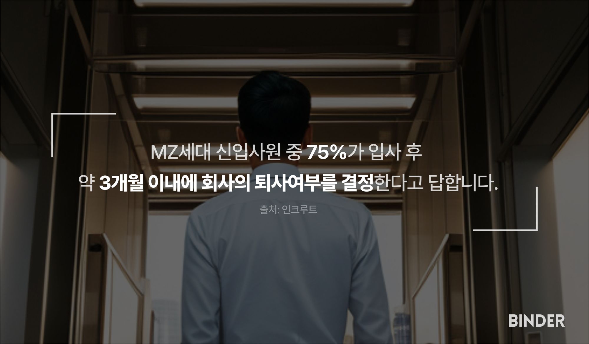 인크루트에서 시행한 설문조사의 통계를 보면, MZ세대 신입사원 중 75%가 입사 후 약 3개월 이내에 회사의 퇴사 여부를 결정한다고 답했습니다.