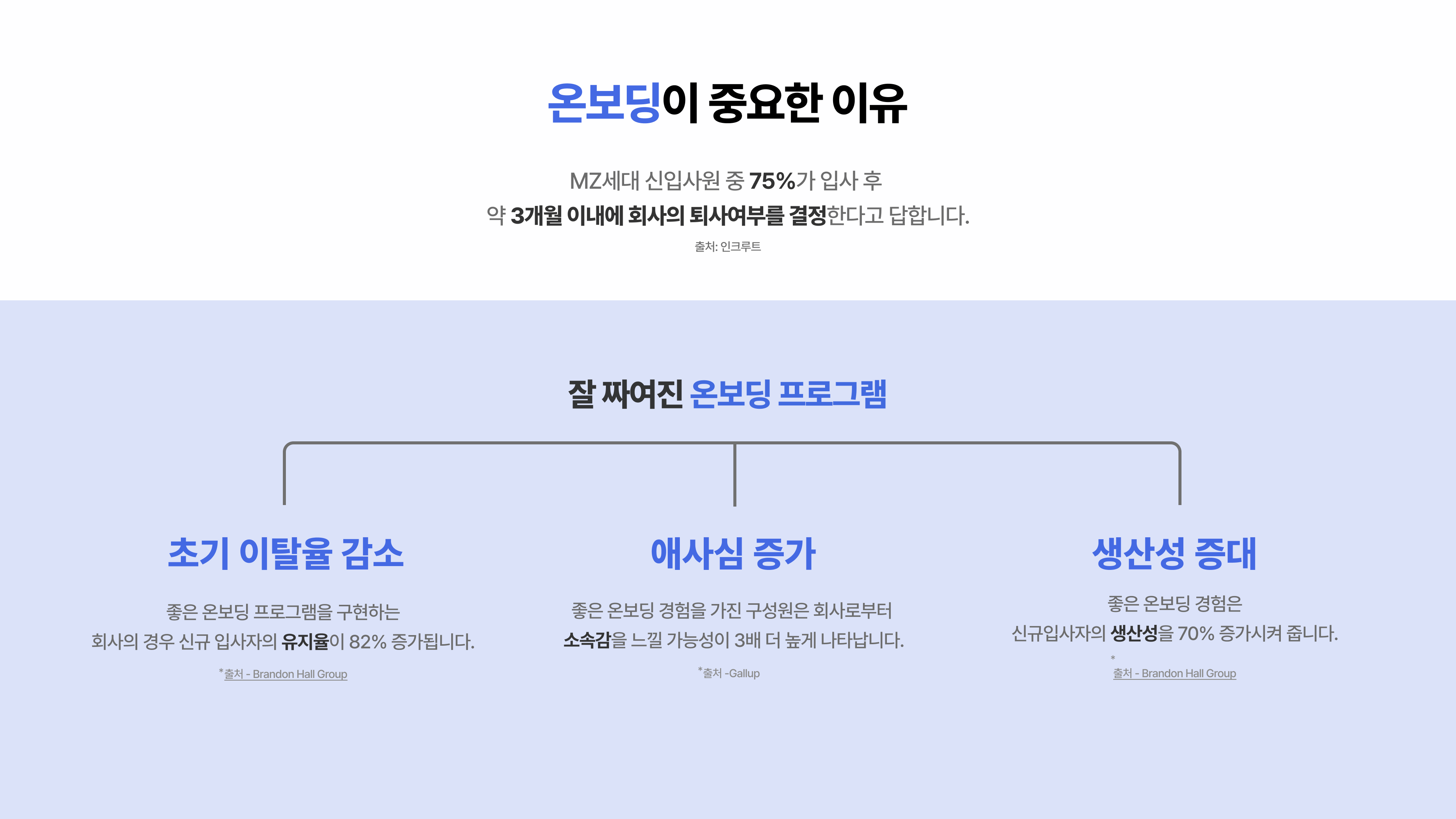 이 단계들을 온전히 수행한 신규 입사자들은 입사 초기에 회사에 대한 애사심을 가지게 되어 이탈률이 낮아지고, 조직에 빠르게 적응하고, 효과적으로 업무를 수행할 수 있는 능력을 키우게 됩니다.